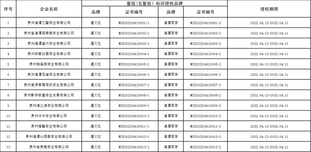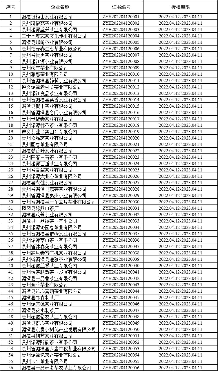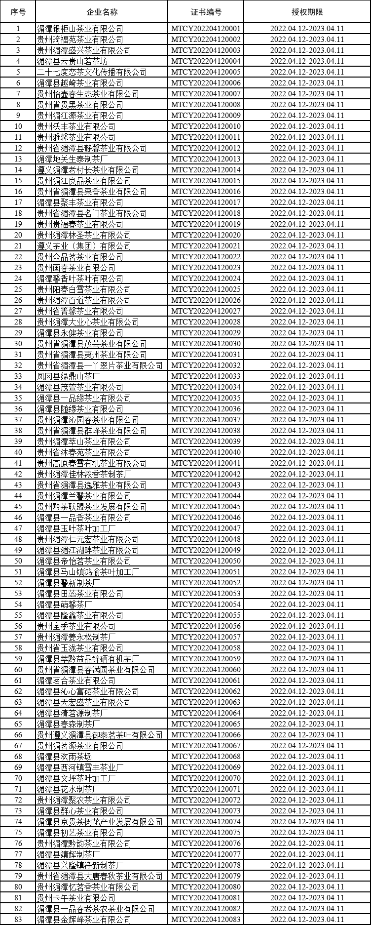今年首批获得“遵义红”“湄潭翠芽”公用品牌授权茶企公布