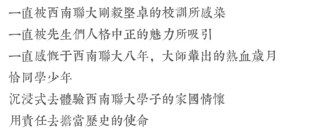用活泼、动感的方式和个性化的视角去探索西南联大的故事。