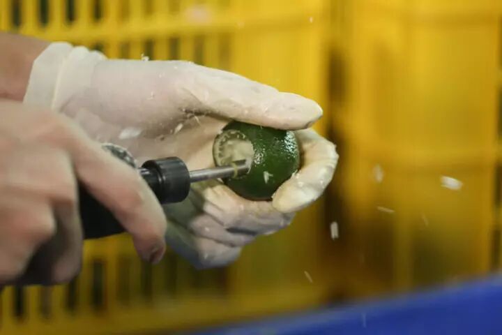 ▲严格按照精制小青柑制作要求的尺寸筛选。避免果太小影响与茶的融合