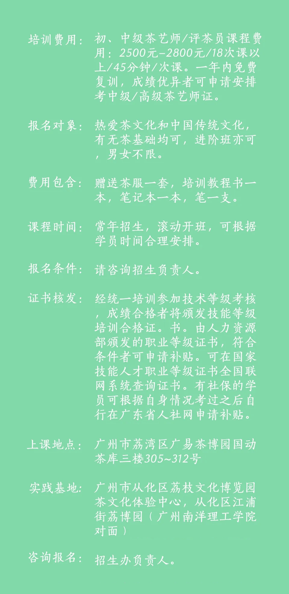 马邦茶学院是拥有合作办学资质,是广东科贸职业学院芳村教学点,广东生态工程职业学院从化教学点。岭南现代技师学院芳村人才培训中心。