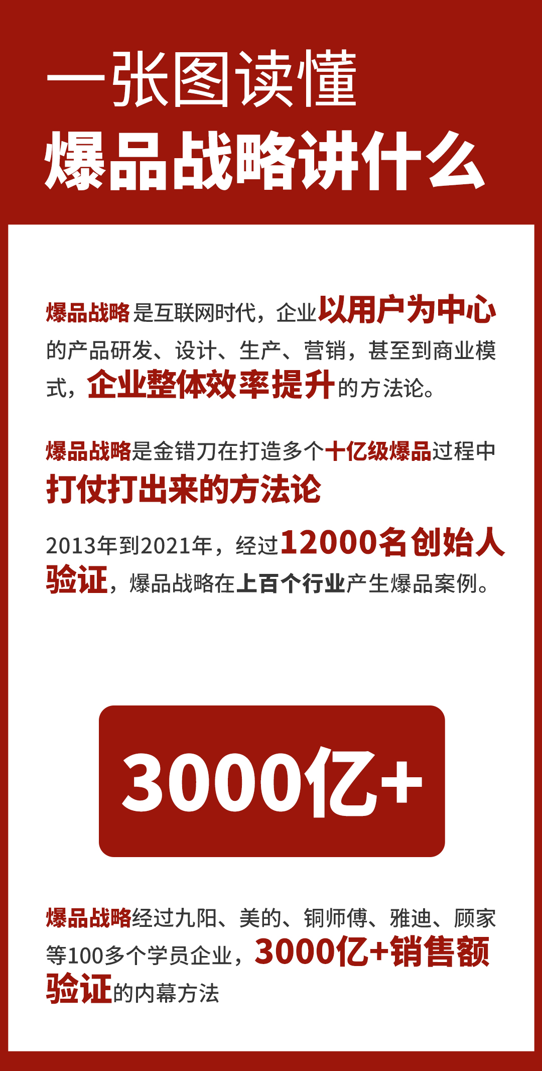 这也是爆品战略总裁营最擅长的打法,以及众多爆品创始人和爆品企业的成长路径。