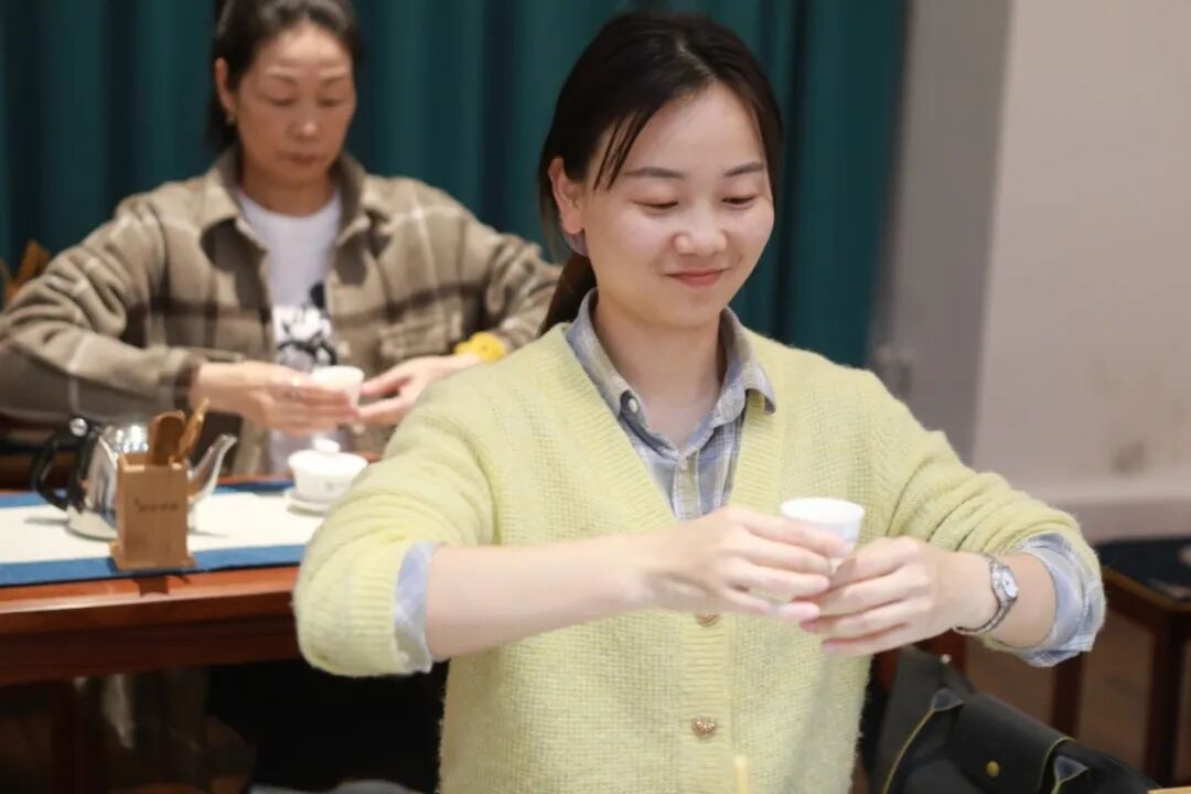 林语老师采用了理论与实操相结合的教学方法,带大家一起学习了生活茶艺的冲泡手法,以及基本茶桌礼仪和茶叶品鉴方法。
