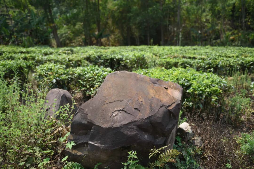 第二天,我要往深山里寻访更古老的野生茶树群落。海南的野生古树茶是珍贵的自然资源,主要集中于五指山水满乡、红山阿驼岭、白沙南开乡等地,分布分散无序,且多生长于人迹罕至的密林,单株采摘难度大、成本高,注定了这里不会形成云南的古茶热潮,毕竟云南在三百年前的雍正年间,有过自上而下的“改土归流”政策所筑起的“绿色长城”,这种人文历史背景在全世界也是独有的。陨石坑里,白沙茶园