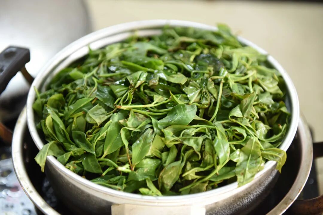 △ 野茶的新稍这些茶采回来后,以蒸汽杀青,最后晒干,制成了蒸青绿茶。之所以选择将这些鲜叶按古老的蒸青法制作,算是一次追崇与记忆,它带着密林的兰花之幽,雨林生命的邂逅与交错,然后封存在一片茶香里。做成蒸青茶晒干后得到一二两,饮后印象深刻——“野性难驯”,但四五年后,竟意外地转化为醇厚有劲。