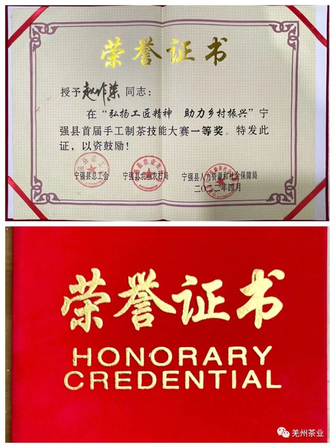 宁强县羌州茶业公司制茶能手赵作荣同志获得“一等奖”