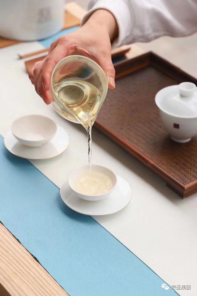 在倒茶汤的时候要分倒均匀,而且到茶汤的时候切勿倒满,因为这有个说法“茶满欺客”,还有赶人走的意思。而且茶倒满容易烫手不便于客人握杯嘬饮,所以到七分满即可,暗寓“七分茶三分情”,客人分倒完汤,剩余的茶汤才自己扫尾。