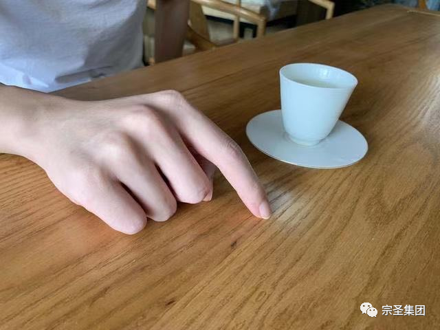 食指中指并拢,敲击桌面,相当于双手抱拳作揖,敲三下表示尊重。