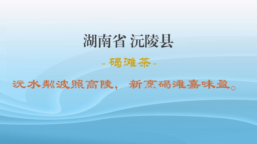 沅陵产茶历史悠久、碣滩茶久负盛名。碣滩茶,外形条索紧细圆曲,嫩香持久,滋味鲜爽,水浸出物高达49.8%,高出国家标准12.8个百分点,为全国绿茶类之首,被誉为“中国高端绿茶的杰出代表”。早在2010年沅陵县启动碣滩茶统一品牌工作,2014年碣滩茶成功注册为国家地理标志证明商标,《碣滩茶地理标志证明商标管理办法》和《碣滩茶包装暂行管理办法》发布,全县按照统一的包装设计方案,通过母子商标体系初步实现了碣滩茶品牌的统一。2015年碣滩茶获得意大利米兰世博会中国名茶金奖,2016年碣滩茶获得湖南省著名商标,2017年碣滩茶品牌作为怀化市统一品牌进行整体打造,2017年碣滩茶获得中国优秀茶叶区域公用品牌,2017年碣滩茶被评为湖南省十大农业区域公用品牌,2018年碣滩茶评为湖南省十大名茶,2019年碣滩茶荣获袁隆平特别奖。