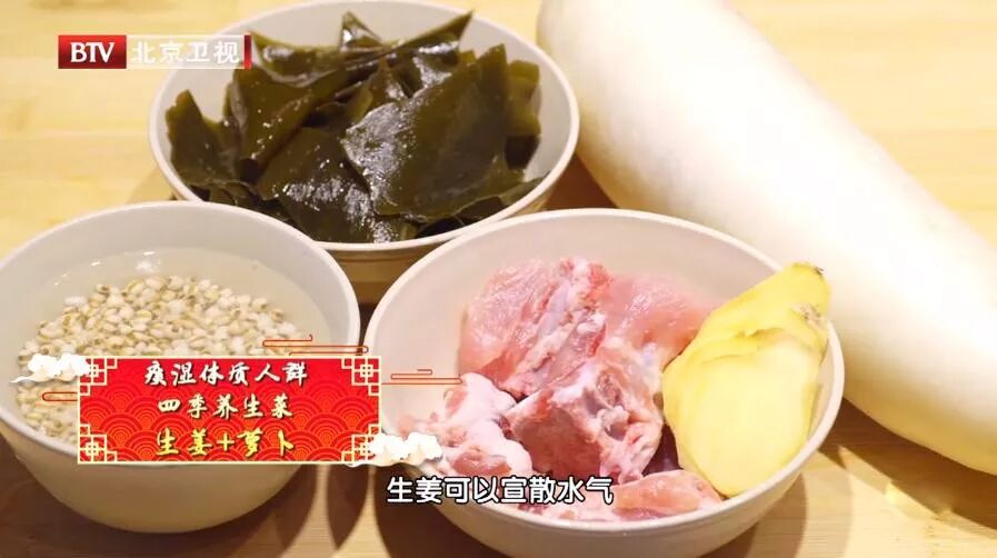 如果您也属于痰湿体质,就要注意控制了,因为痰湿体质与心脑血管疾病和三高疾病都很近!倪诚教授推荐既好吃又能帮助预防痰湿加重的萝卜海带排骨汤,并且告诉我们,“冬吃萝卜夏吃姜”这句话,对痰湿人群来说有例外,痰湿体质的人群,一年四季都要生姜和萝卜一起吃。