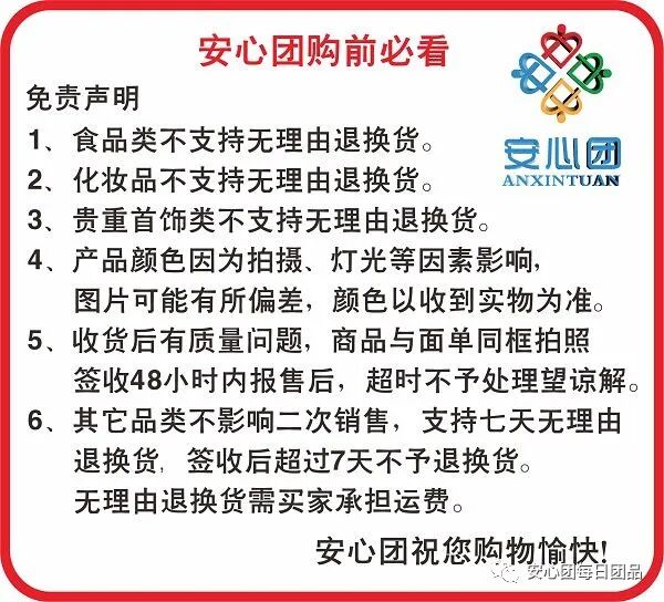 【售后】非质量问题不退换,到货有质量问题请在48小时之内带快递面单+产品图片+视频反馈代理!