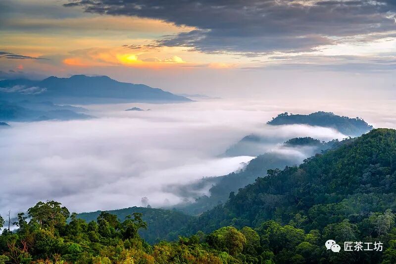 春茶新品万物生,源自新六大茶山之一的南峤茶山,位于勐海县勐遮镇。这里山势海拔起伏大,差值高达1000米,年均气温为18℃,全年云雾天约100天,茶树在仙境密林中自在成长,不受人类干扰。