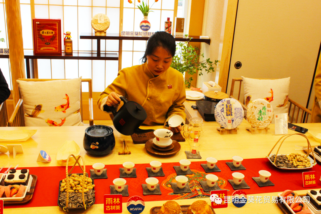 为做好茅台文化的传播者,抓好文化建设与服务不断提升,把茅台文化做的更深,把服务做的更好,进一步夯实茅台品牌形象。4月19日昆明金葵花贸易有限公司联合雨林古树茶开展谷雨“品茗.酒赏技.艺 茶酒相融”的主题活动。