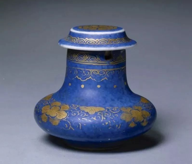 清康熙洒蓝釉描金花卉纹带盖糊斗 故宫博物院藏