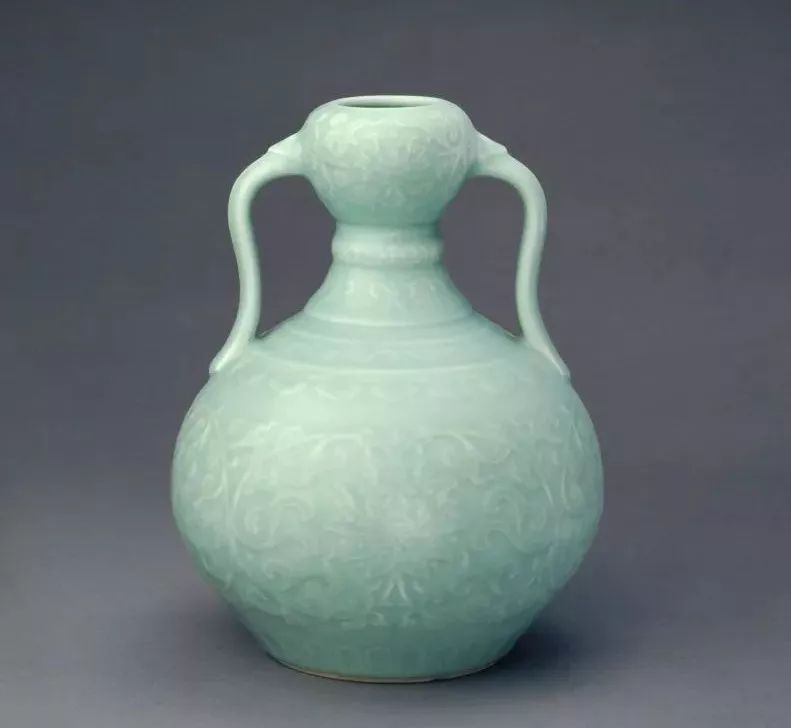 清雍正粉青釉凸花如意耳蒜头瓶 故宫博物院藏