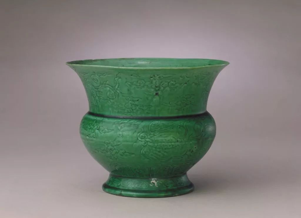 明嘉靖瓜皮绿釉暗划云凤纹尊 故宫博物院藏