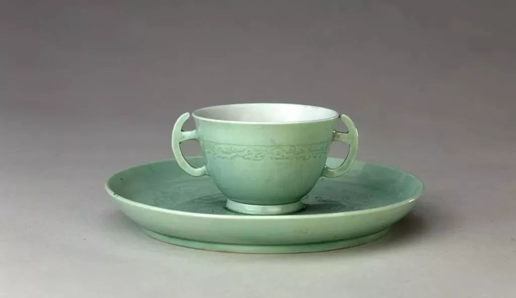 清康熙淡绿釉暗花螭纹杯碟 故宫博物院藏