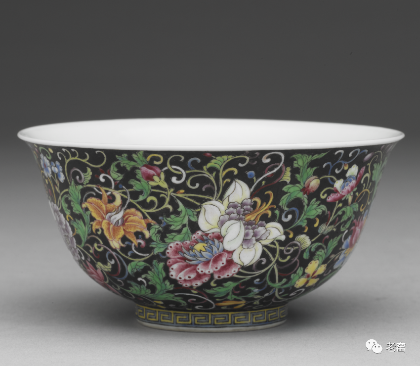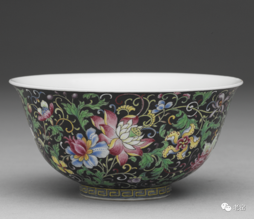 清乾隆 墨地珐琅彩缠枝花卉碗(图1) 台北故宫博物院馆藏