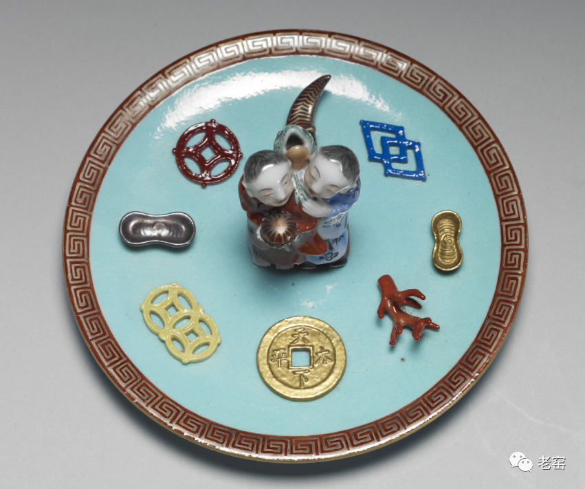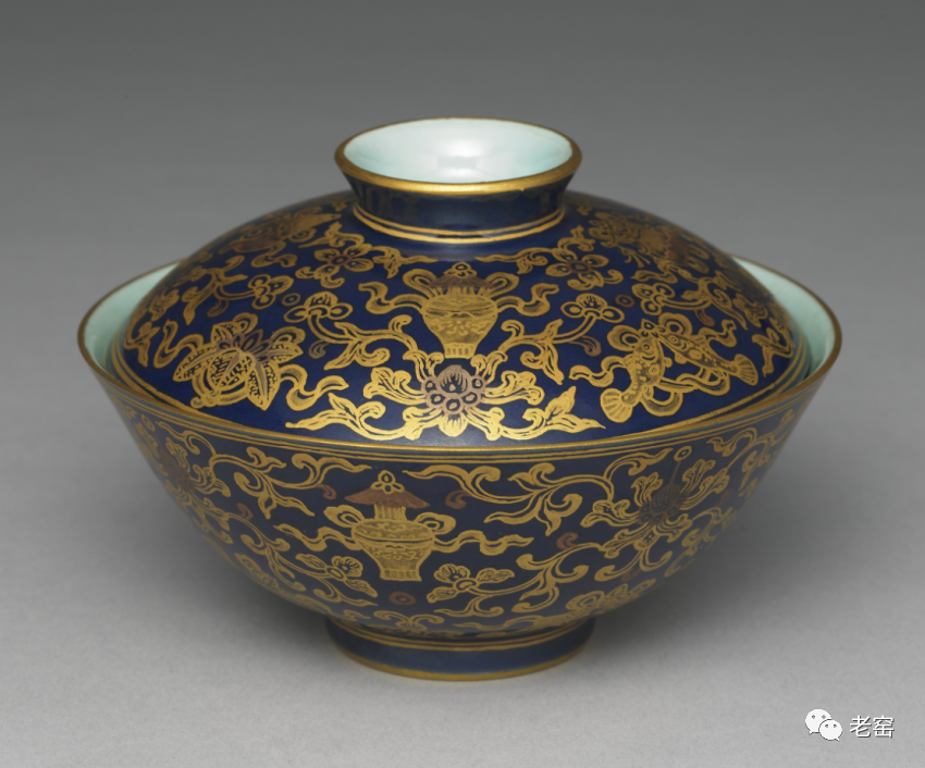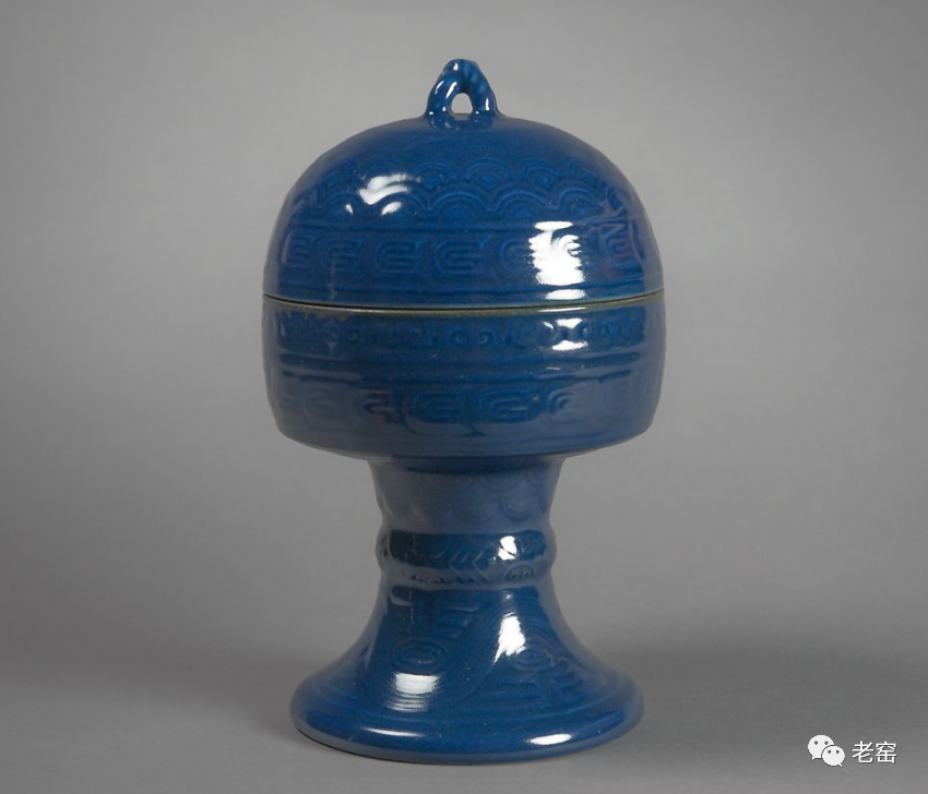 清乾隆 蓝釉印花瓷豆 美国大都会博物馆藏