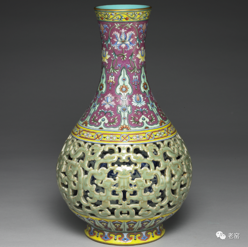 清乾隆 洋彩锦上添花玲珑胆瓶 台北故宫博物院馆藏
