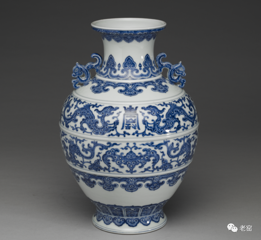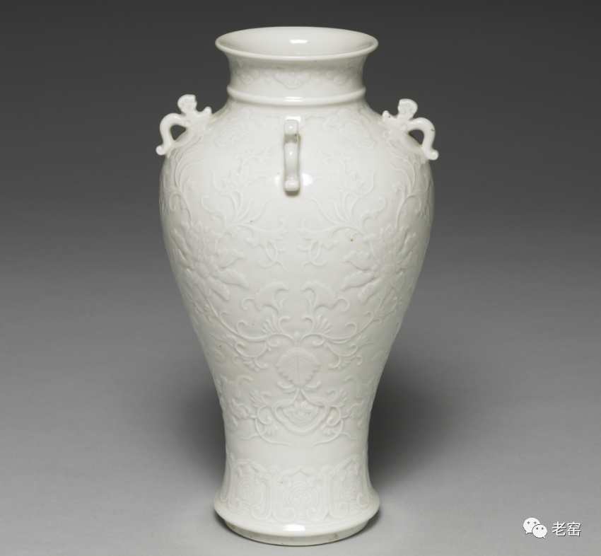 清乾隆 白釉螭龙纹象耳尊(正面) 美国大都会博物馆藏