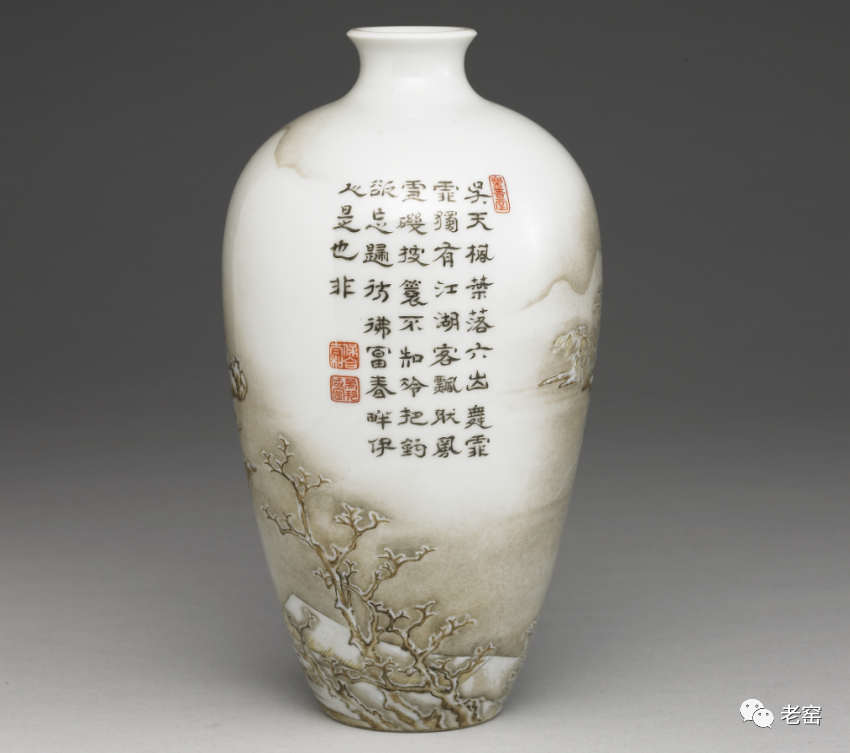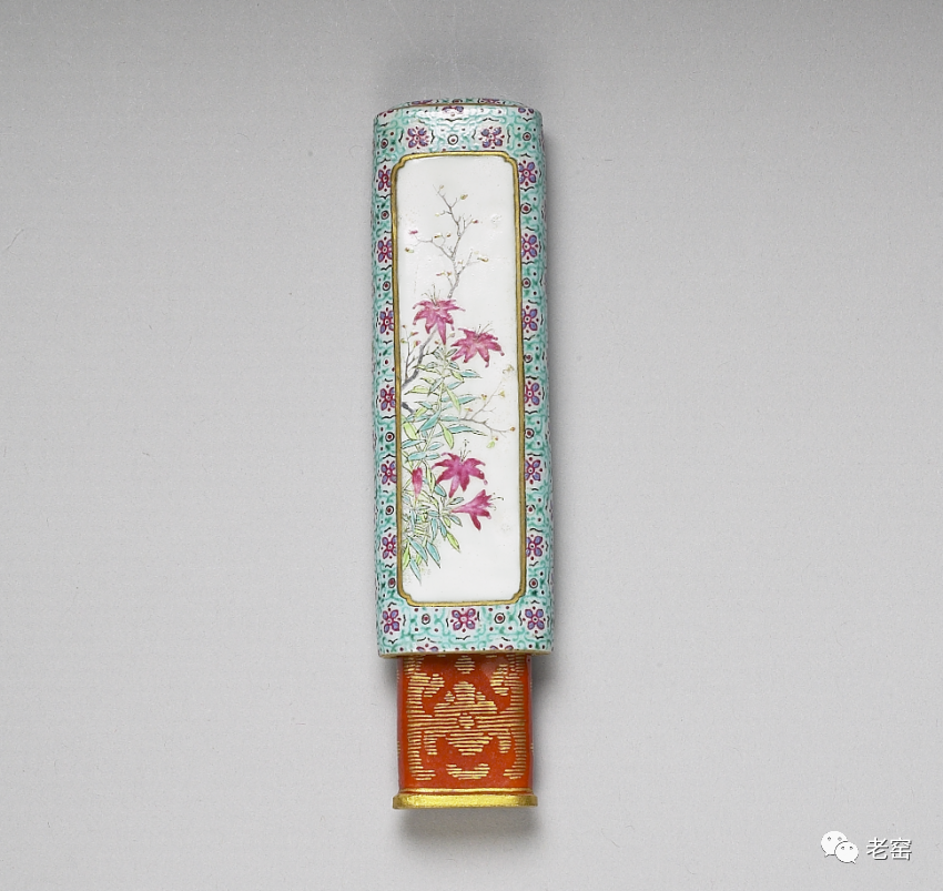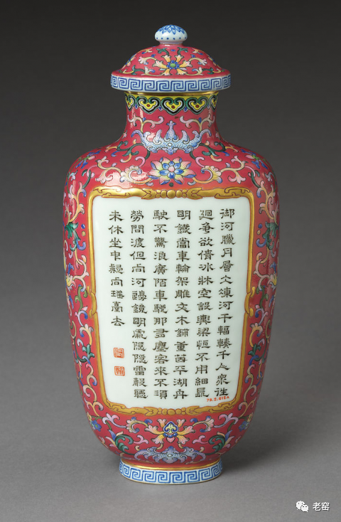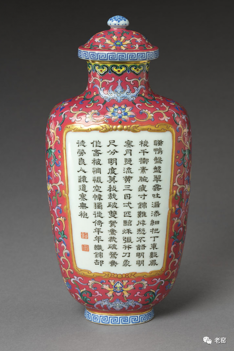 清乾隆 红地粉彩乾隆御诗瓶(正面) 美国大都会博物馆藏