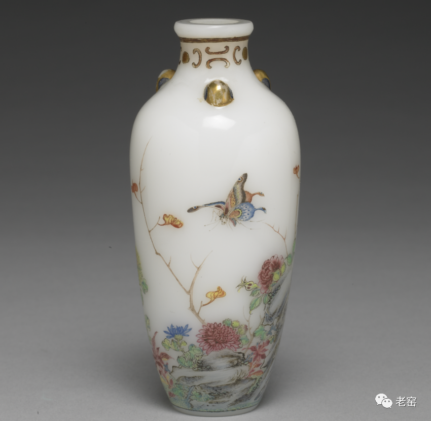 清乾隆 玻璃画珐琅花蝶瓶(图1) 台北故宫博物院馆藏