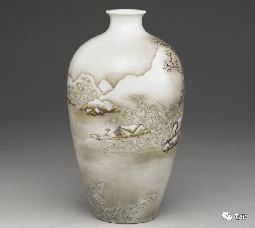 清乾隆 洋彩冬景山水梅瓶(正面) 台北故宫博物院馆藏
