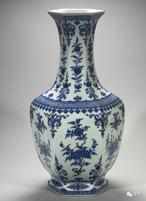 清乾隆 青花折枝花卉六方瓶(正面) 台北故宫博物院馆藏