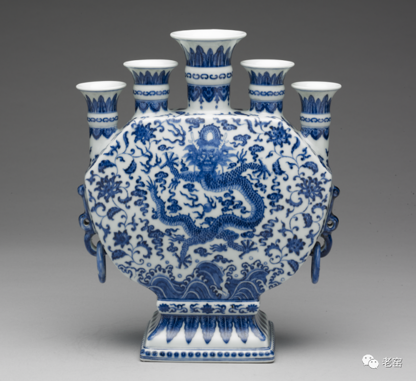 清乾隆 青花云龙纹五管瓶环耳花插(整体) 台北故宫博物院馆藏