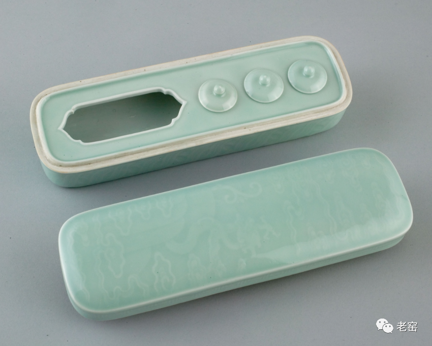 清乾隆 豆青釉暗刻龙纹墨盒 美国芝加哥博物馆藏