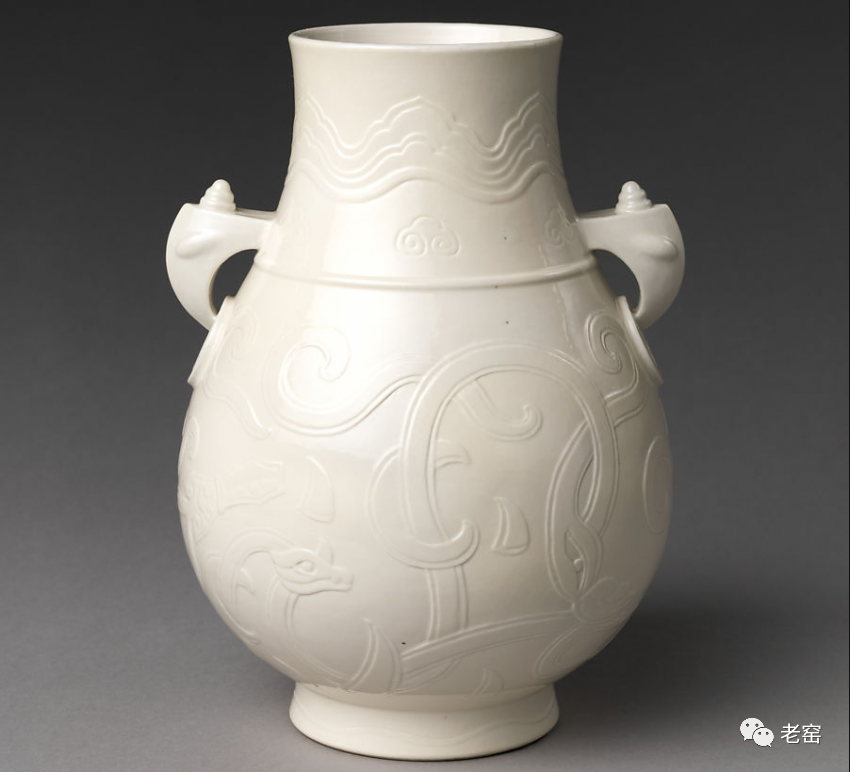 清乾隆 白釉螭龙纹象耳尊(款识) 美国大都会博物馆藏