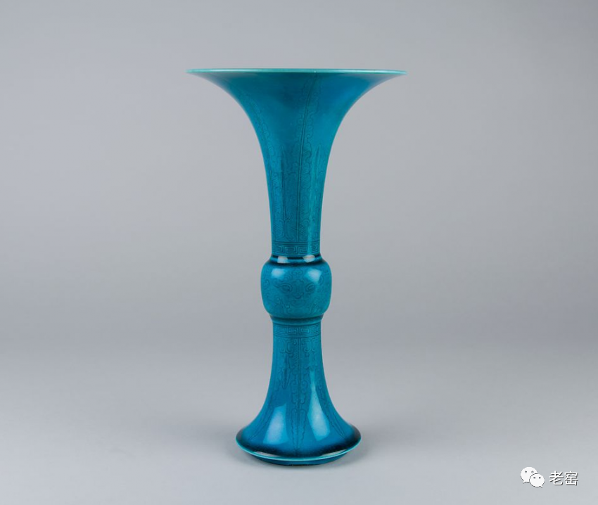 清乾隆 孔雀蓝釉花觚(正面) 美国大都会博物馆藏
