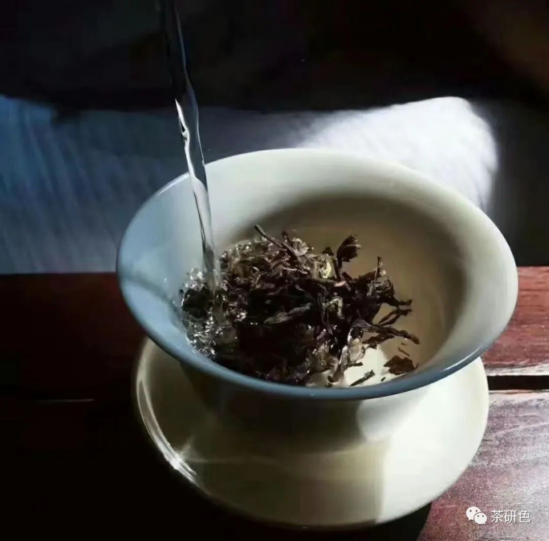 白茶陈茶呈黑褐色,肉眼可以看到白毫,毫香浓,有草药味,木质香,滋味醇厚,很耐泡,可以煮着喝。