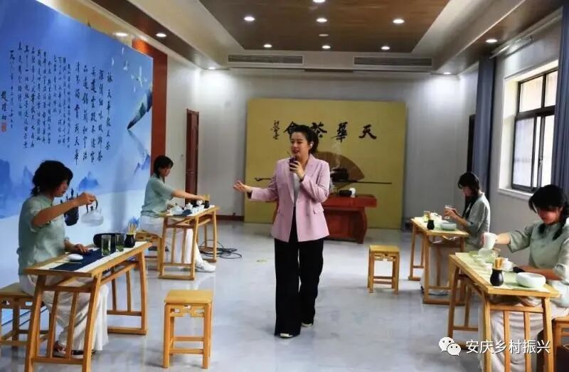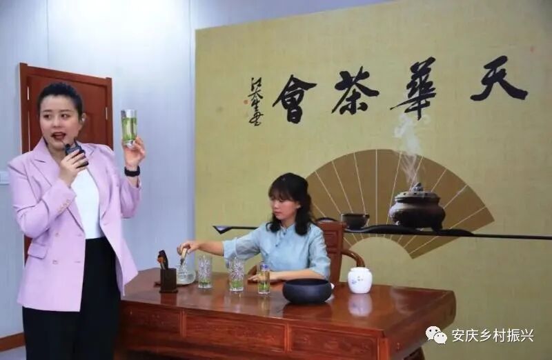 俗话说:“好山好水出好茶”。在民居旁边的安徽中天生态农业发展有限公司“天华谷尖茶会室”里,更是展示谷尖色香味形和茶艺文化的魅力所在。伴着优美悦耳的古筝旋律,五位美女正用温婉娴熟的动作展示精湛的茶艺术,传播精深的茶文化。并通过主播芳芳与茶叶专家刘立华的友情对话,把天华谷尖外形挺直、形似稻谷、色泽翠绿、回味甘甜、白毫显露的特性说到了极致。更令现场沉浸在品茶之中且一贯嗜好茶品的安徽中腾集团公司董事长李玉中更为感叹:“天华谷尖茶汤色碧绿,叶底匀整,嫩绿明亮。闻一闻,香气高长,味道浓厚;喝一口,滋味鲜爽,回味绵长”。