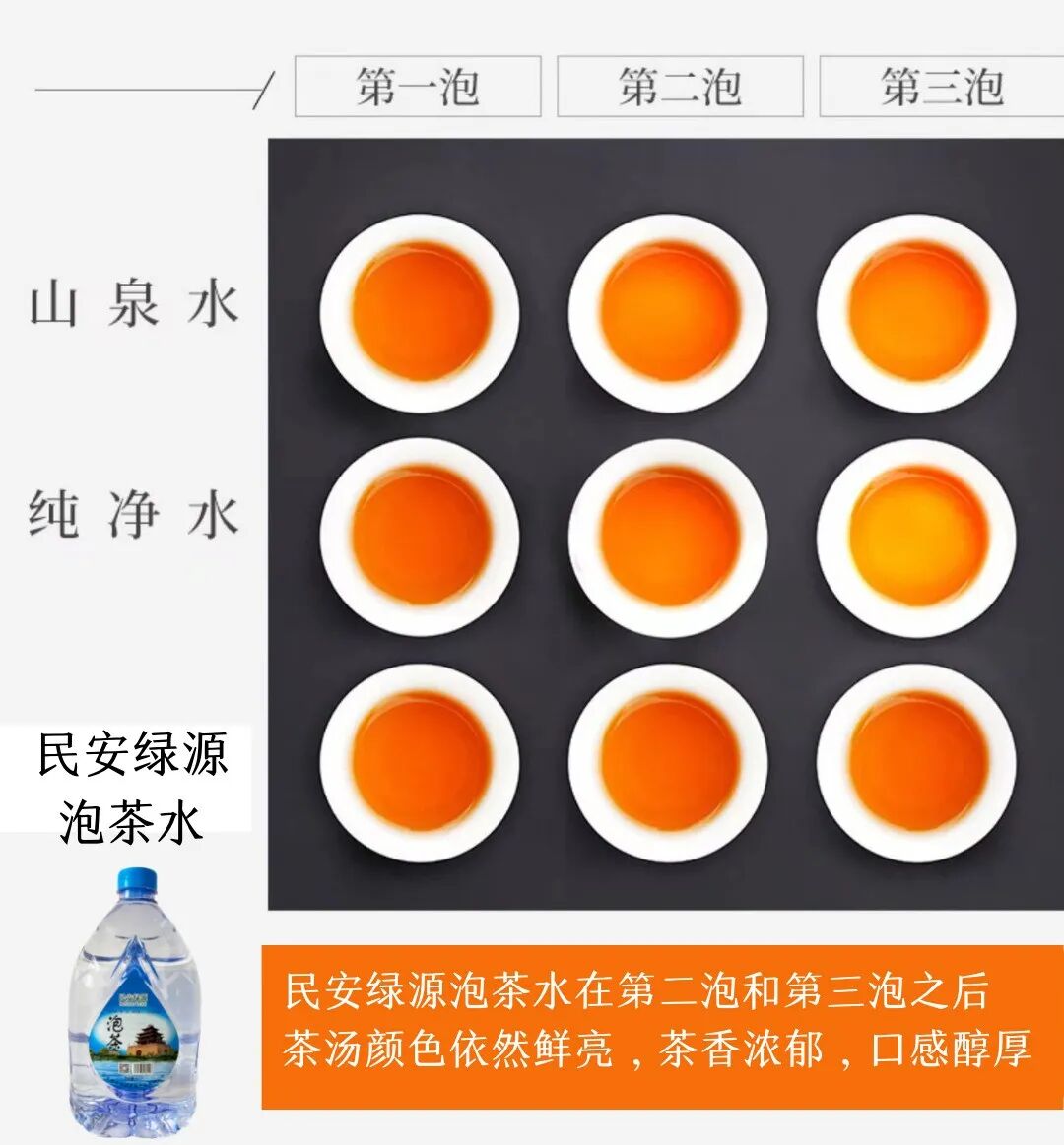 民安绿源泡茶软水不仅符合“三低”理化指标,同时在茶水冲泡中,表现出汤色清亮、香气悠长、滋味醇正的绝佳状态。为此,观察“民安绿源泡茶水”在泡茶中的表现。无论多少次测试,“民安绿源泡茶水”始终表现出极佳的泡茶品质。这个结果让大家们仿若收获了意外之喜,也让当今的爱茶人士一解心中的茶水情结。