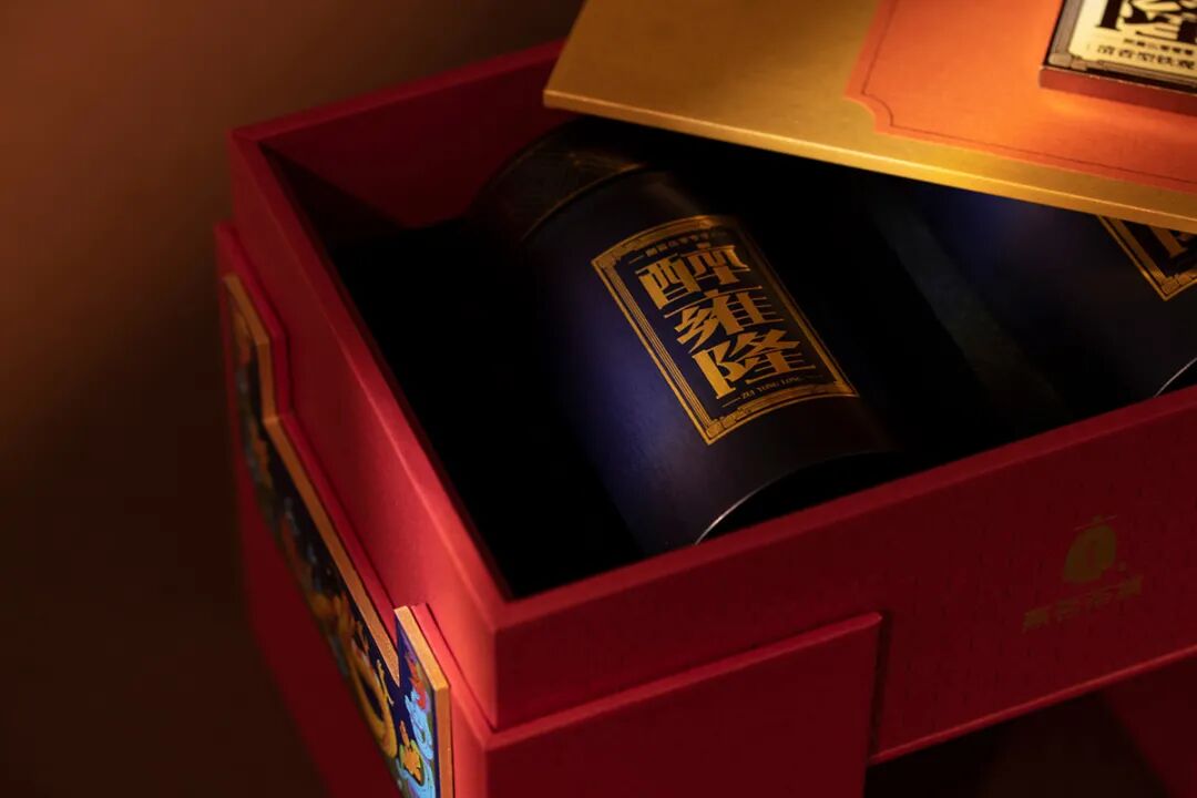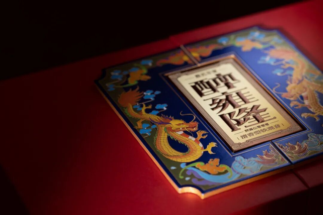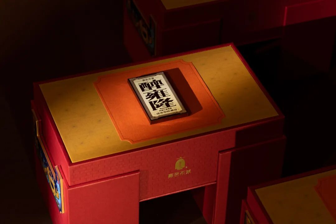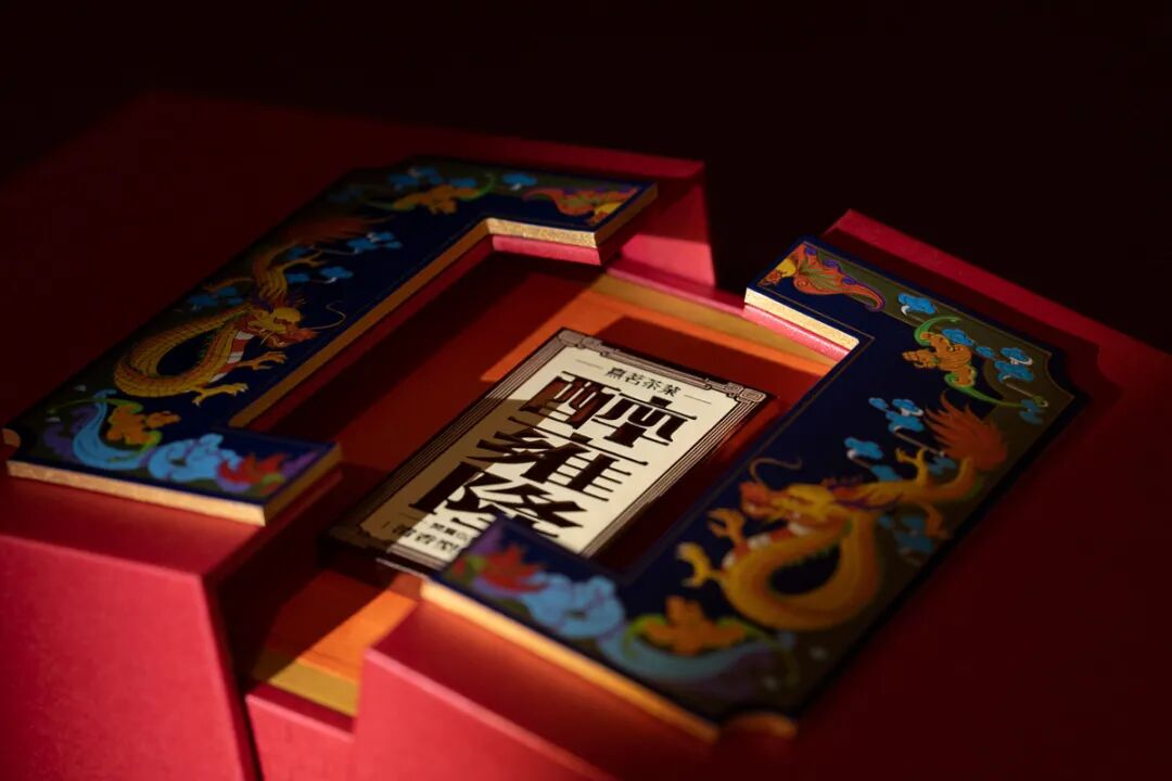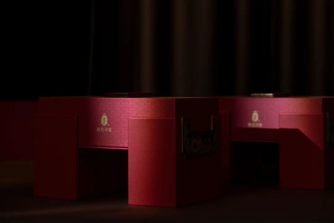包装上同步呈现的是闽南建筑上经典的红砖肌理印纹。与封面上的雕梁一呼一应让整体包装更为丰富立体。包装整体分别贯穿相关色系搭配,让宫廷贵气从外到内贯穿到底,让每个环节从手提袋、礼盒、内盒、扉页和泡袋等都充满尊贵精神。