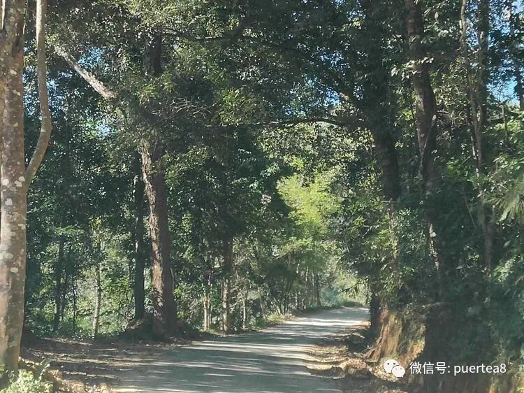 大漆树村到麻黑古茶园只有一段路面是沙石路,余下的均为沥青路面,从大漆树到麻黑沿途都是茶树,与周边树林共生。