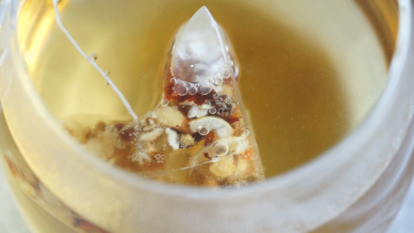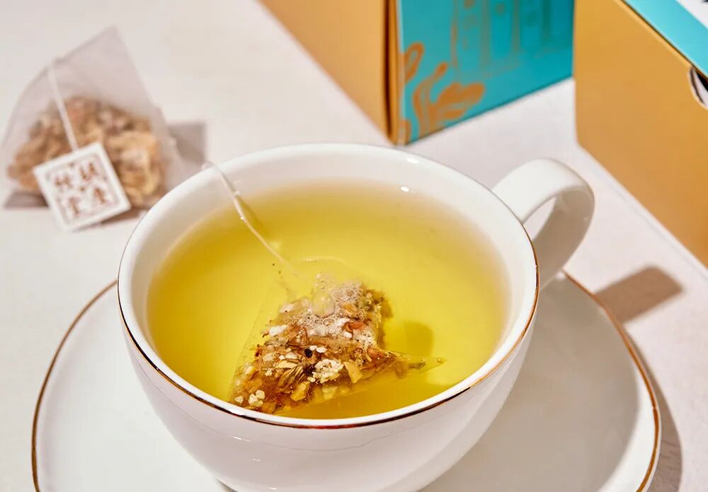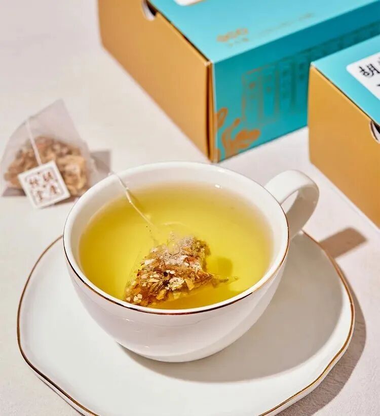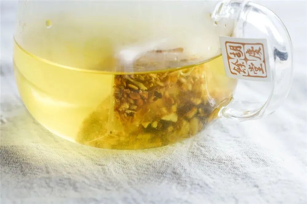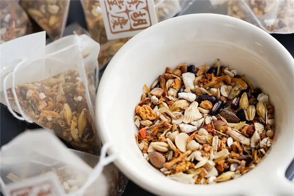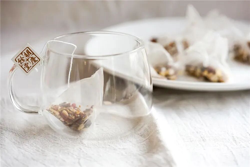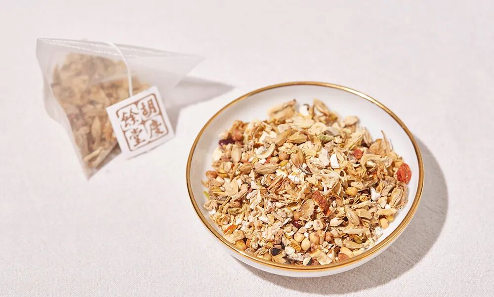 所以,胡庆余堂才会根据原料的释放效果,将材料研磨成大小适当的颗粒。研磨后的颗粒不仅有利于食材养分完全析出,吸收也更有效率,还能避免上火。看,透过茶包,能清清楚楚看到切碎的原材料,不是那种劣质茶包偷工减料用的边角渣料。
