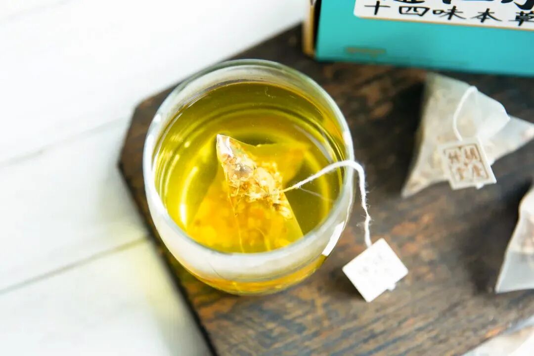泡出来的茶汤金黄,还能闻到自然材料的清香。味道淡淡的,比喝凉白开解渴。一天泡一袋,让身体慢慢吸收,效果更好。