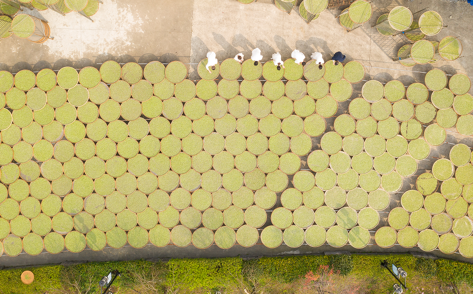 1. 第1次复式萎凋:室内自然萎凋、室内加温萎凋和日光萎凋相结合。日光萎凋应选择早上或傍晚阳光微弱的情况下进行。