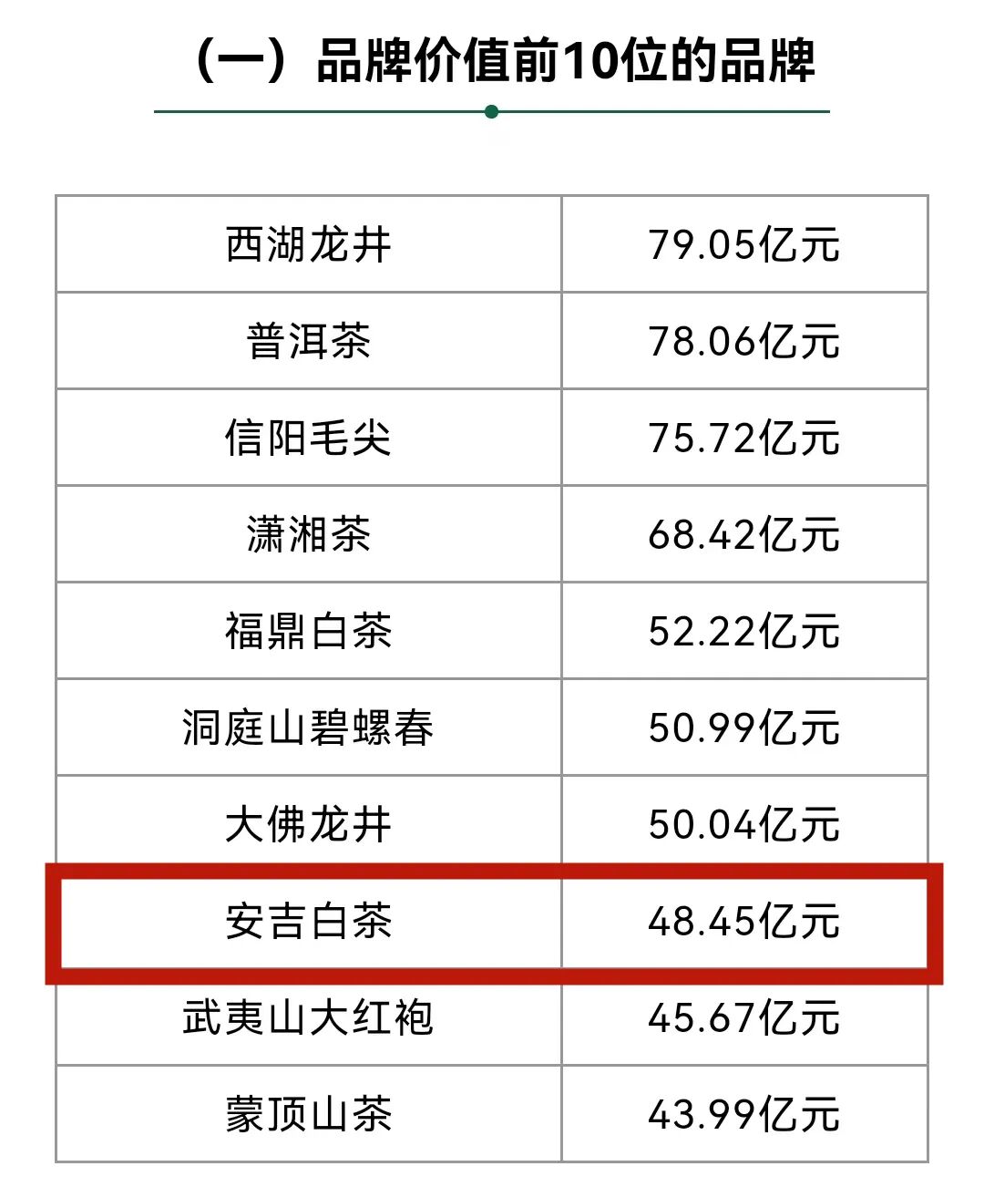 安吉白茶连续13年获中国茶叶区域公用品牌价值十强 4月12日,由浙江大学CARD中国农业品牌研究中心、中茶所《中国茶叶》杂志、中国国际茶文化研究会茶业品牌建设专委会、浙江大学茶叶研究所、浙江永续农业品牌研究院等联合开展的“2022年中国茶叶区域公用品牌价值评估”研究结果出炉。 其中,安吉白茶品牌价值为48.45亿元,在126个有效评估的茶叶区域公用品牌价值排行榜中,居第八位,连续十三年跻身中国茶叶区域公用品牌价值十强。同时,安吉白茶还入选“最具品牌传播力的三大品牌”。