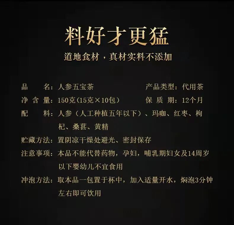 反正我们每天都要喝水,还不试试这款人参五宝茶呢?在为身体补充水分的同时,还能享受清香的口感,在不知不觉中享受意外之喜!