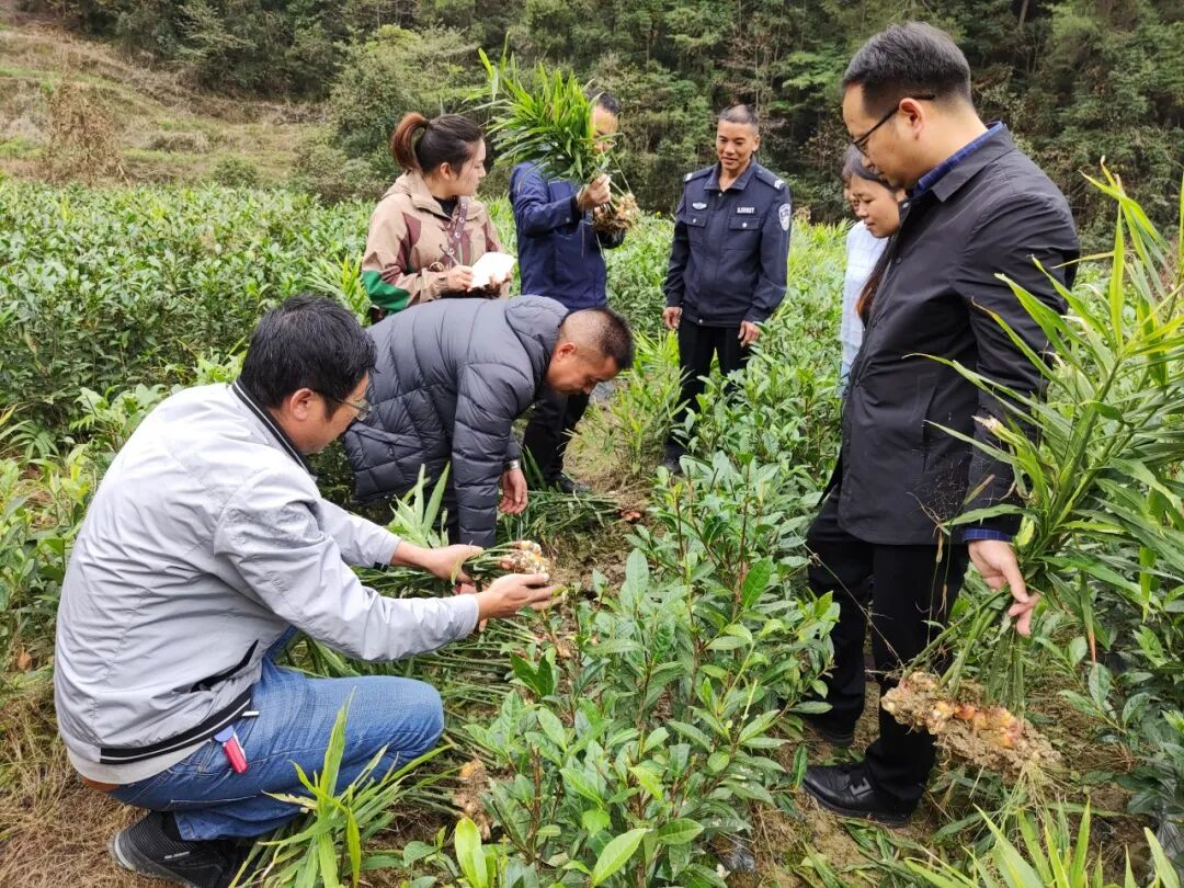 在栈行村高家台黄金茶专业合作社幼龄茶园基地,茶叶专家彭云从茶园浅耕施肥、树兜培土、茶树枝梢留养以及来年春茶采摘应注意的要点等方面为现场人员进行了详细讲解。东西部协作对口支援湘西的济南市农科院蔬菜专家王学海、赵明国两位高级农艺师对合作社在幼龄茶园中套种生姜的做法给予了充分的肯定,他们认为这不仅可以提高土地利用率,有效的防草,还可以通过套种来提高茶园的经济效益。同时也从合理密植、开深沟种植、后期加强培土以及姜种贮藏等方面提出了很好的建议。