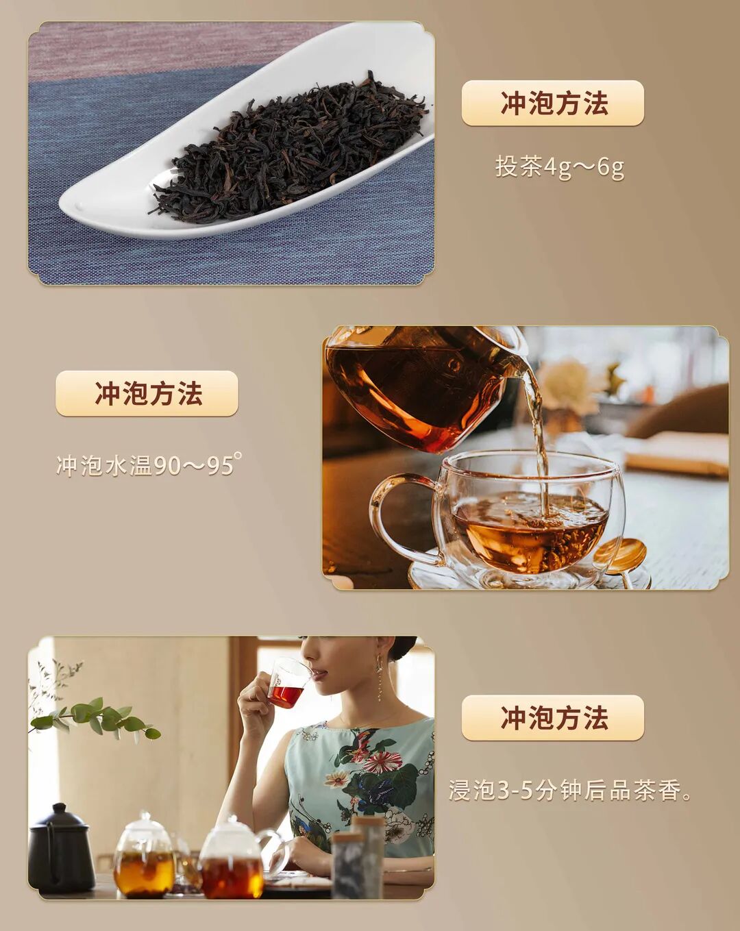 每次投茶约3克,水温85-90℃之间。