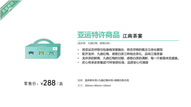 主营品牌:狮峰、天之红祁门红茶、谢裕大、曦瓜、吴记普洱、六妙福鼎白茶、柑润堂纯干仓陈皮、宁夏枸杞、贵州金沙酒、各类茶具等。