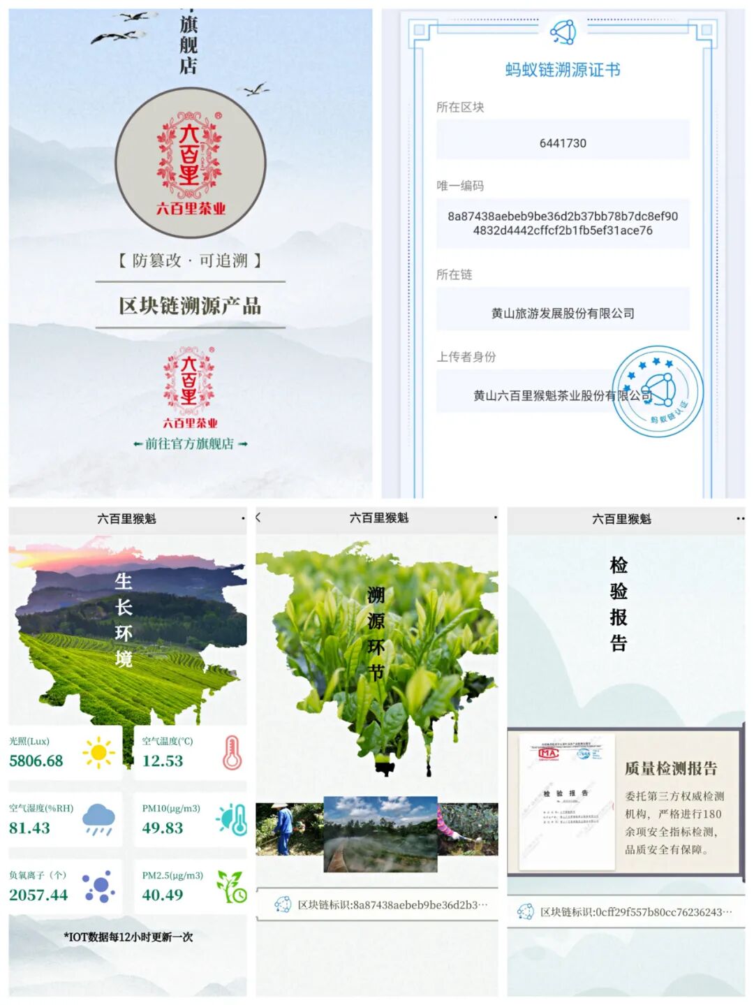 开过“十八弯”的山路驶进黄山区乌石镇,满山青翠的桃源野茶谷太平猴魁种植示范基地映入眼帘。与常见的茶园有所不同的是,在这里,繁密的天然阔叶林成了茶叶的“保护伞”。据介绍,这种林下栽培的模式能让茶园拥有完整的生态,从而减少自然灾害、虫害对茶叶的侵扰。在高低错落的茶垄间,一个个“天眼”正在“望闻问切”。这些IOT智能物联网设备通过数据的收集和分析,让生产者实现了“足不出户”监管茶园。“早在2012年,六百里就开始探索茶园+数字,在全省也算得上领先!”凡涛说。 品质+科技,汇聚成了六百里茶业的底气。 2019年8月,黄山旅游股份、黄山赛富基金与六百里茶业签订合作协议,期望能推动黄山茶产业高质量发展。2020年以来,黄山旅游股份与蚂蚁集团展开三项合作,打算在全省茶业系统中率先启动区块链技术赋能太平猴魁全产业链。 当底气遇上机会,凡涛不假思索地说:“这是值得去搏一次的事!”一拍即合,运用蚂蚁区块链技术打造以黄山茶叶为主的农产品溯源基地成功从想法走向落地,这个项目的建成也填补了我省现代科技运用于茶业领域的空白。 硬件设备升级改造、服务项目不断细化、营销资源加紧对接……在项目组的努力下,一个黄山地区“平台+产品+营销”三位一体的农产品公共服务平台渐显雏形。拥抱区块链,黄山迈出了成功的第一步。“区块链技术将会极大促进太平猴魁茶产业的转型升级和创新发展,对于做大做强太平猴魁茶产业及实施乡村振兴战略将发挥引领示范作用。”凡涛表示。