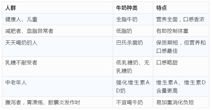 有控制脂肪、胆固醇摄入需求,如超重、肥胖、高血脂、心血管疾病患者等人群,以及喝奶比较多(每天2杯以上)的人,最好选脱脂或低脂奶。