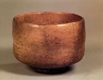 21.赤乐茶碗 湖月千利休七品之一 。涂上赤褐色釉药烧制成的乐烧茶碗。据说乐烧的发源是千利休指导烧瓦工匠·长此郎后,由长次郎开始制造。长次郎被丰臣秀吉赐予「乐」字的金印,后来把此作为家号。和名品赤乐早船出自同一人之手,现藏于五岛美术馆藏。
