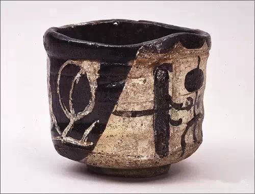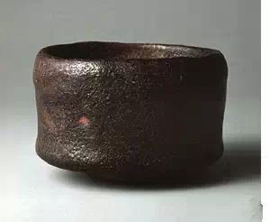 24.长次郎黑乐茶碗 千声黑色的乐烧茶碗。乐烧是指在制造陶器时不使用旋转台扶助,一切用手拉坯成型,并且用急热急冷的方法来烧制。据说千利休喜好黑乐茶碗,丰臣秀吉则是喜爱赤乐茶碗。长次郎所作的黑乐茶碗,利休七品之一,碗体颇伟,因此得名。从千利休之手经历诸家辗转至鸿池家。现藏于五岛美术馆。