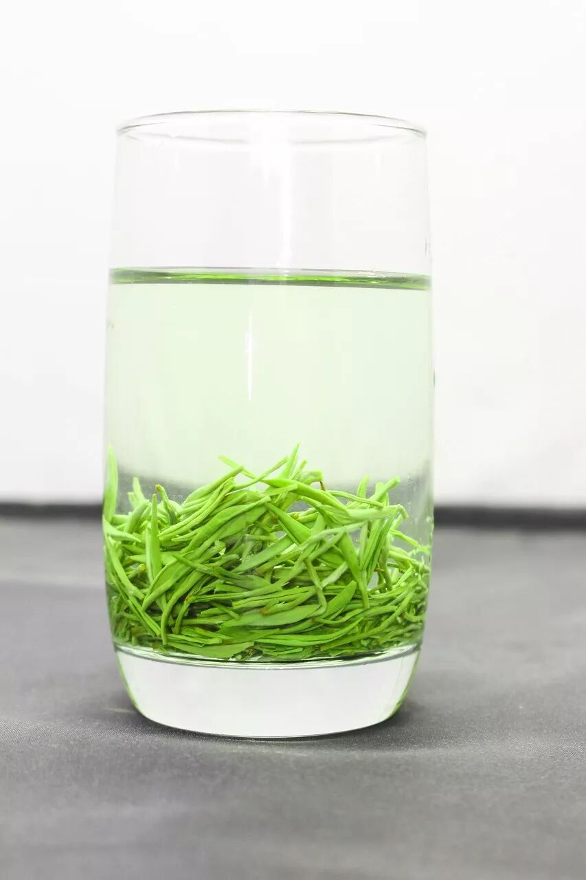 ③注水。冲泡信阳毛尖,一般采用中投法来冲泡,先倒入三分之一玻璃杯的开水,然后再置茶。